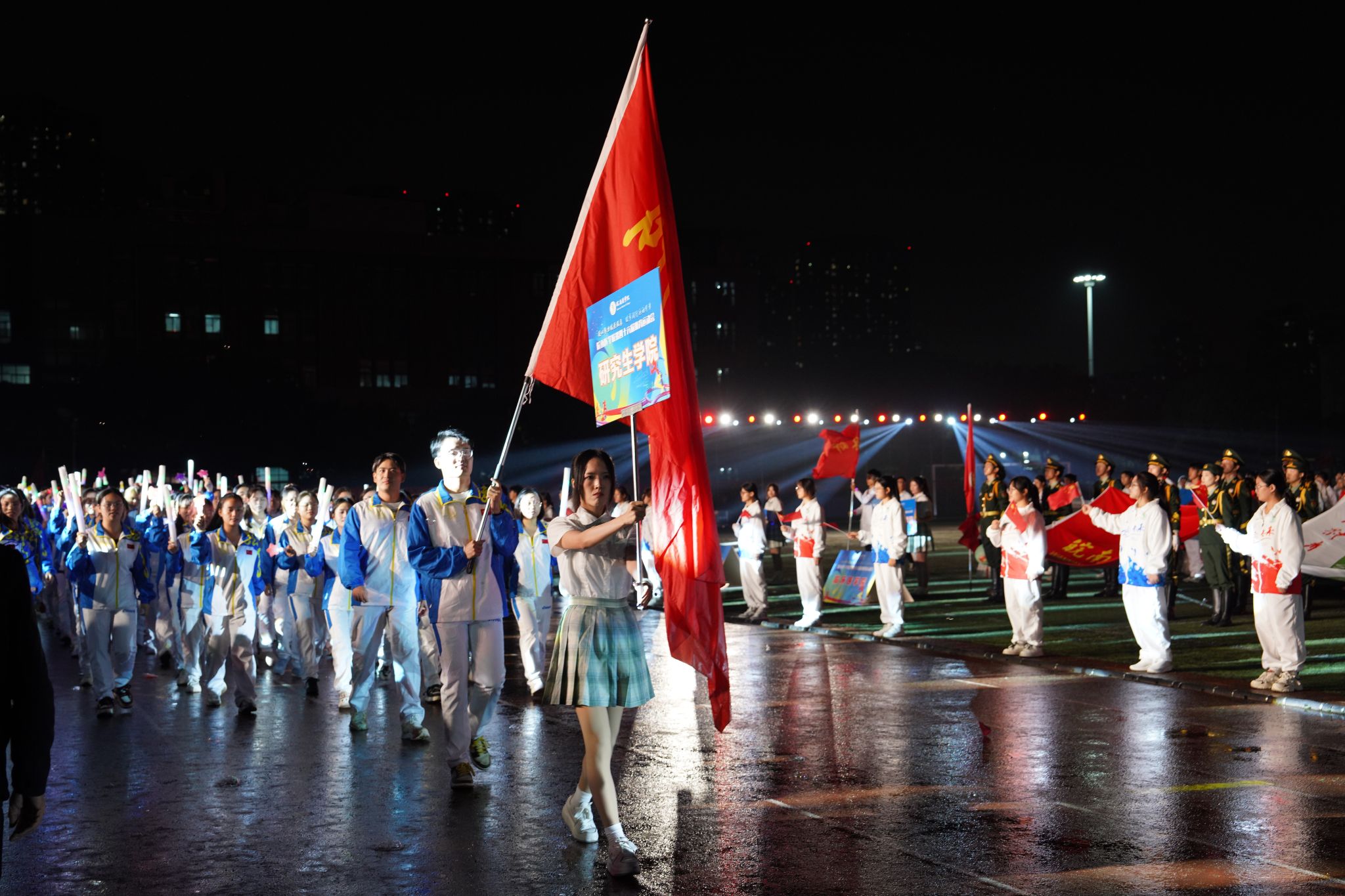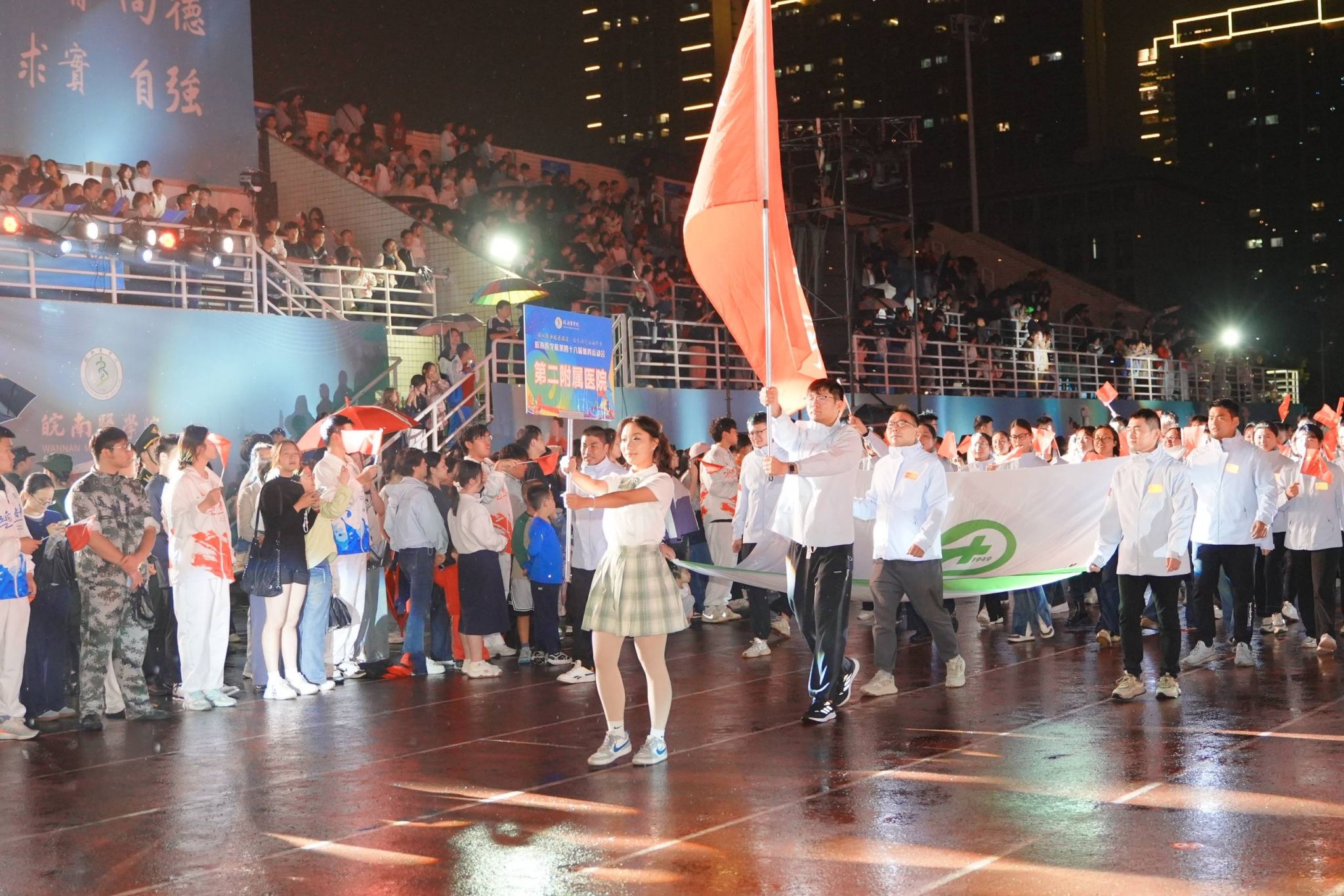 党委副书记贾贤燕致开幕词。她代表学校向为赛事筹备付出心血的全体师生医护员工表示诚挚感谢,向参与开幕式演出的师生致以亲切问候,向即将驰骋赛场的运动员们致以美好祝愿。贾贤燕指出,学校树牢融合育人理念,深化教育教学改革,深入推进以体育智、以体育心、以体育人,学校体育工作蓬勃发展,竞技体育成绩优异。希望同学们充分展现竞技风采,读懂体育背后蕴含的时代意义与人生价值,用勇气挑战不可能,用执着应对不确定,用豁达接纳不完美,望远山而前行,知不足而奋进,努力书写无愧青春、无愧时代的绚丽诗篇。