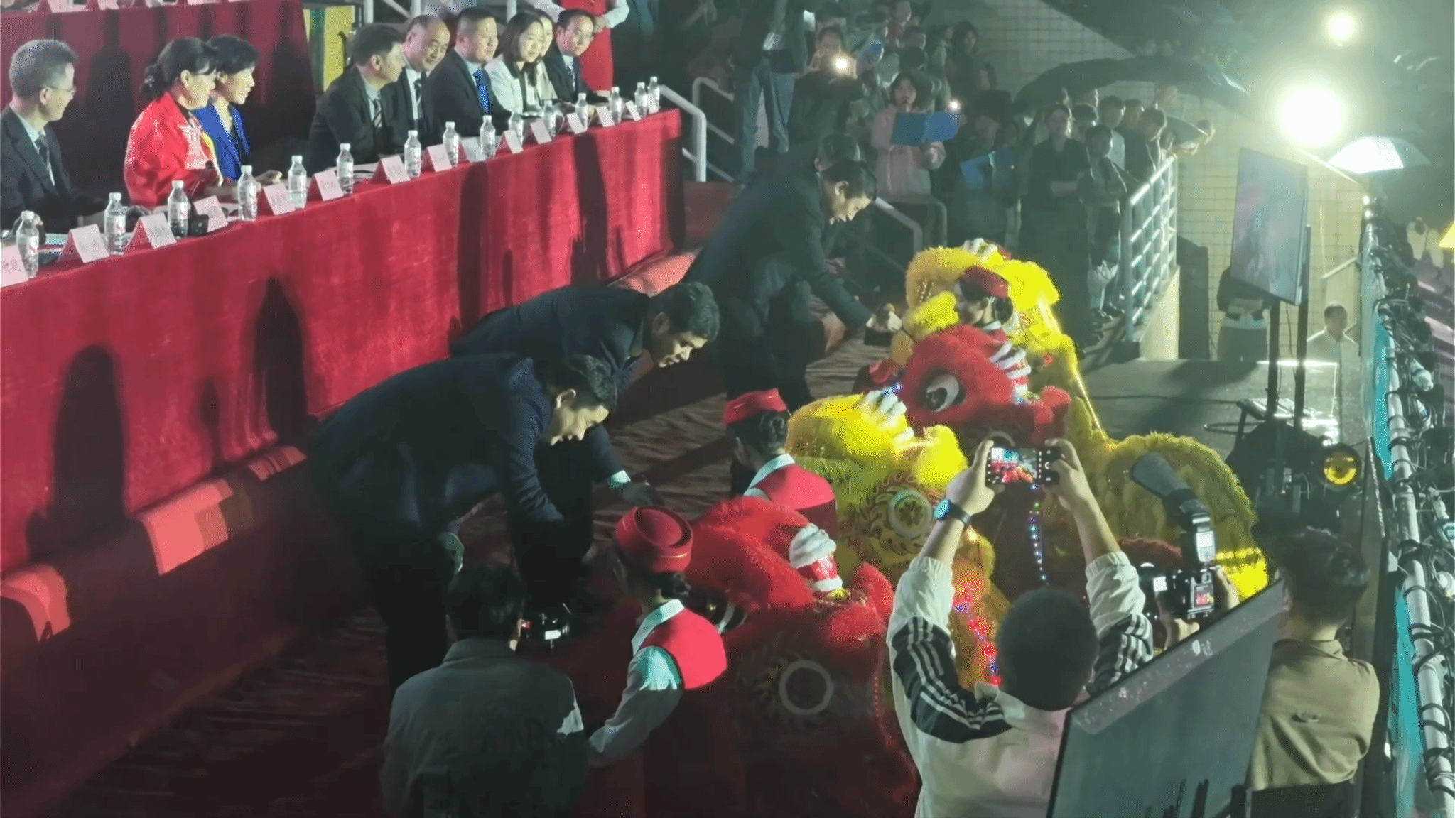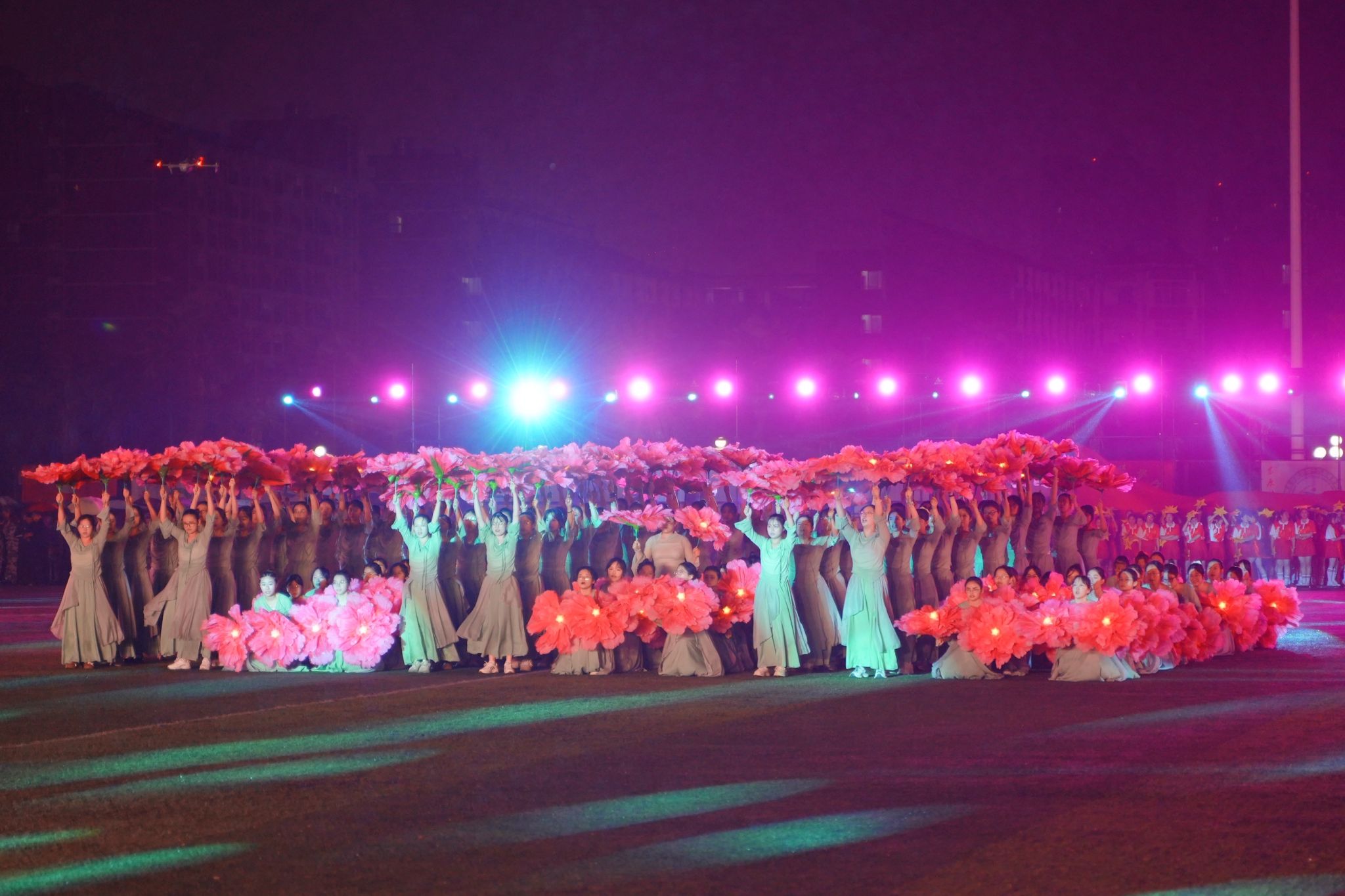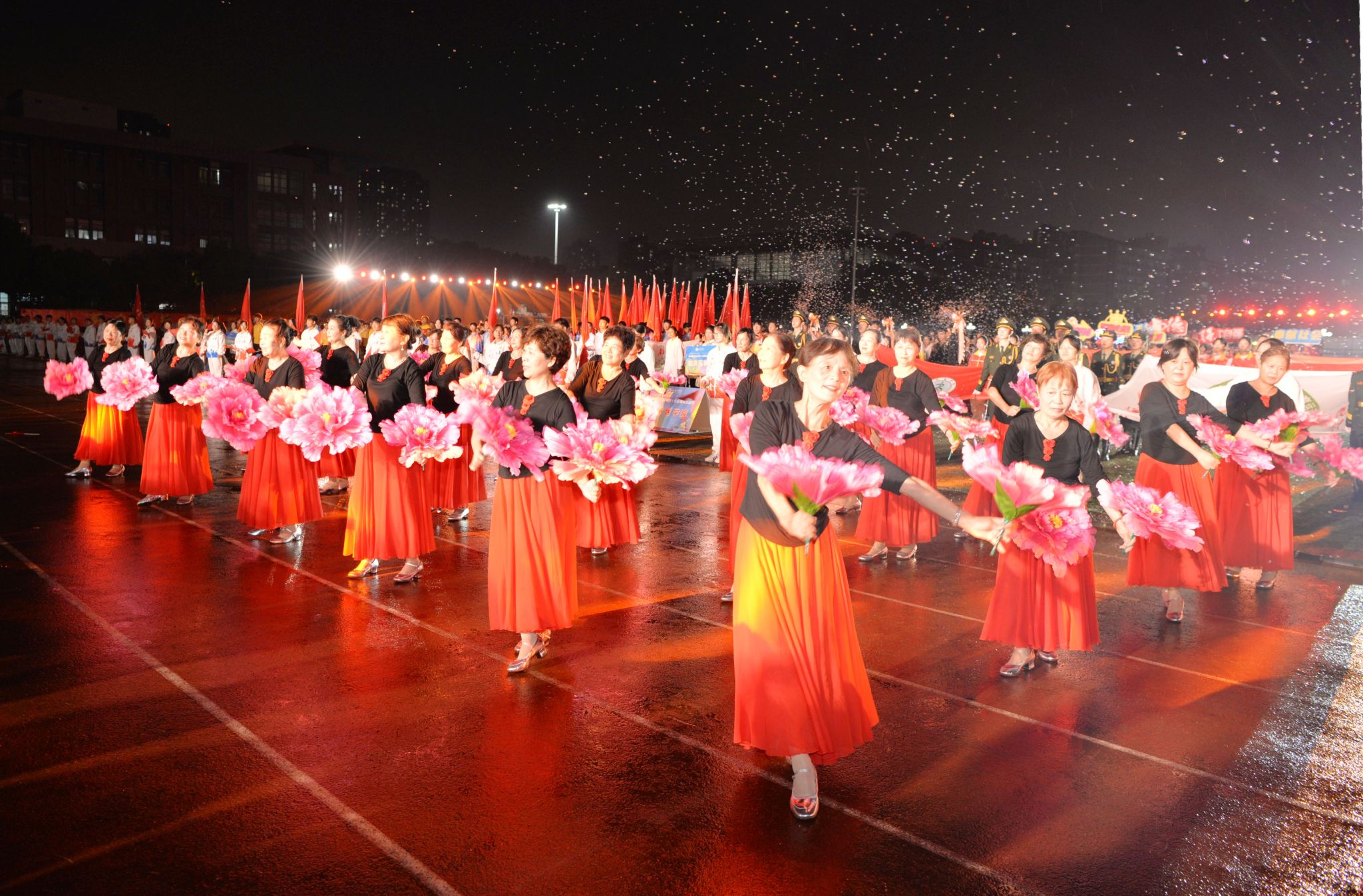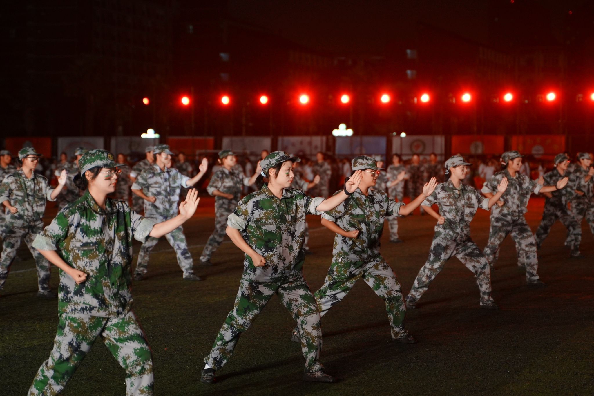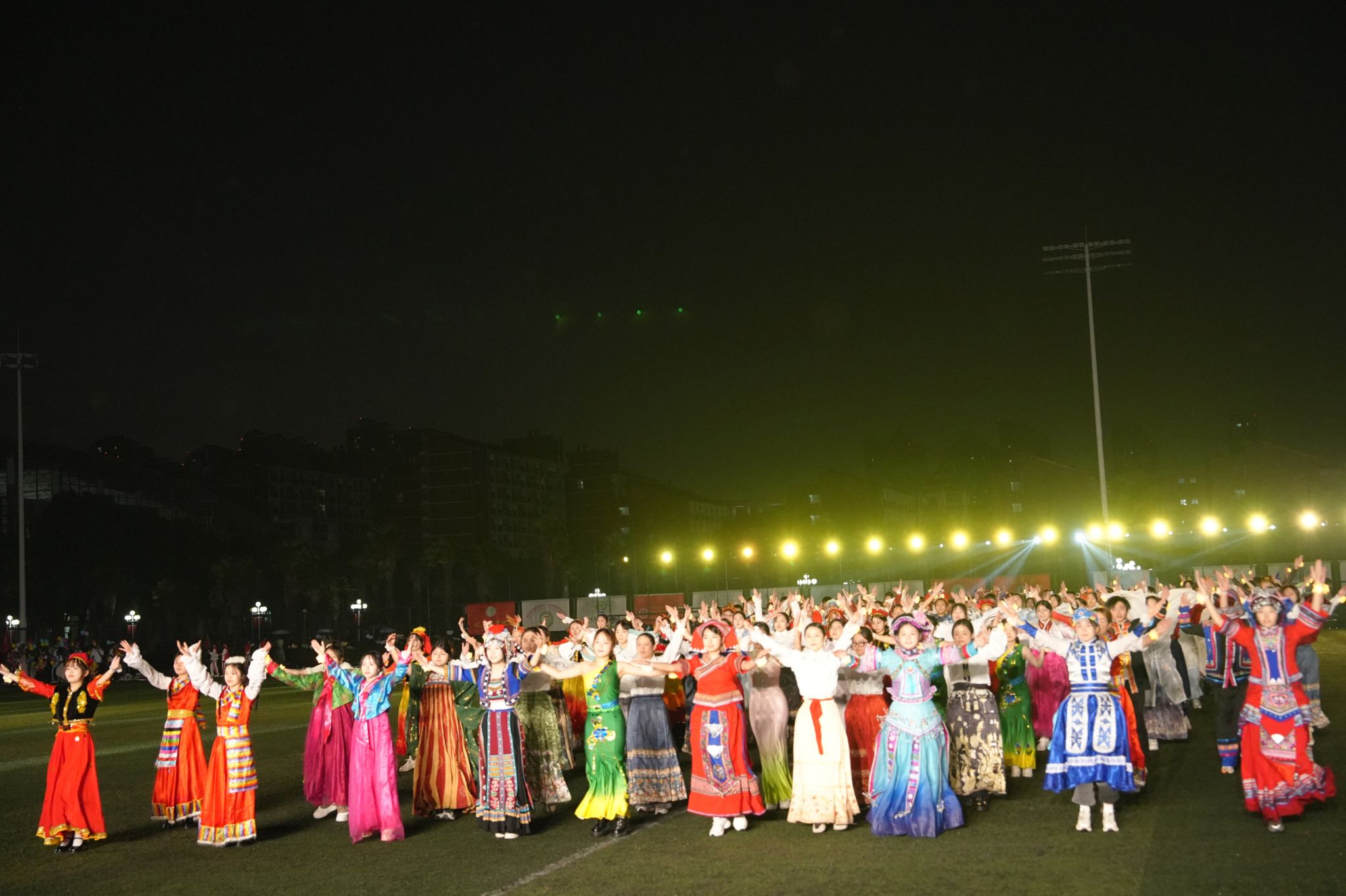 伴随着璀璨绚丽的灯光、欢快动感的旋律,精彩纷呈、声势浩大的文艺汇演让现场师生共同感受了一场力量与美感交融、青春与活力交织的视觉盛宴。此次文艺汇演分为“同心同行”“活力绽放”“共赴新程”三个篇章。鼓声激荡,直冲云霄;旗影翻飞,撼动乾坤,气势磅礴的舞蹈《旗鼓飞扬》拉开第一篇章的序幕,瞬间点燃了现场气氛。《龙狮跃鱼灯》将龙狮的磅礴威仪与鱼灯的灵动飘逸熔于一炉,把非遗传承与青春力量完美融合;主席台领导现场执笔为祥狮进行点睛,共同送上寓意深远的美好祝福。《舞动炫彩》通过彩带的灵动变幻,绽放出一朵朵绚烂的“太阳花”,展现出医学生用仁心守护每一个生命的绚烂绽放。第二篇章“活力绽放”中,《花样青春》通过“花”的生长脉络,生动勾勒大学生从青涩到成熟的成长历程,唱响“青春绽放、时代同行”的主旋律。《青春耀华夏》用“团体操+表演”的形式,结合纪念中国人民抗日战争暨世界反法西斯战争胜利80周年,激励青年学子铭记过往历史、传承红色基因。匕首操军体拳表演《利刃凌云》,将大学生的青春朝气与军人的铁血精神相融,一招一式尽显果敢与坚毅。第三篇章“共赴新程”,彰显了青年学子的爱国之情和对未来的美好祝愿。舞蹈《美丽中国》伞影婆娑,200余名学子通过伞的变化和组合拼出“我爱中国”,赤子之心跃然眼前;《旗开得胜》以旗为笔、以天地为画卷,勾勒出“旗如云、舞如风”的壮阔景象,传递着“旗开得胜”的美好寓意。《民族同心家国同辉》将56个民族的舞蹈元素与家国情怀深度融合,展现出各民族像石榴籽一样紧紧相拥的团结之美。此外,离退休老同志带来健身舞《花开中国》, 表达了老同志对祖国的无限深情和对美好生活的热爱。