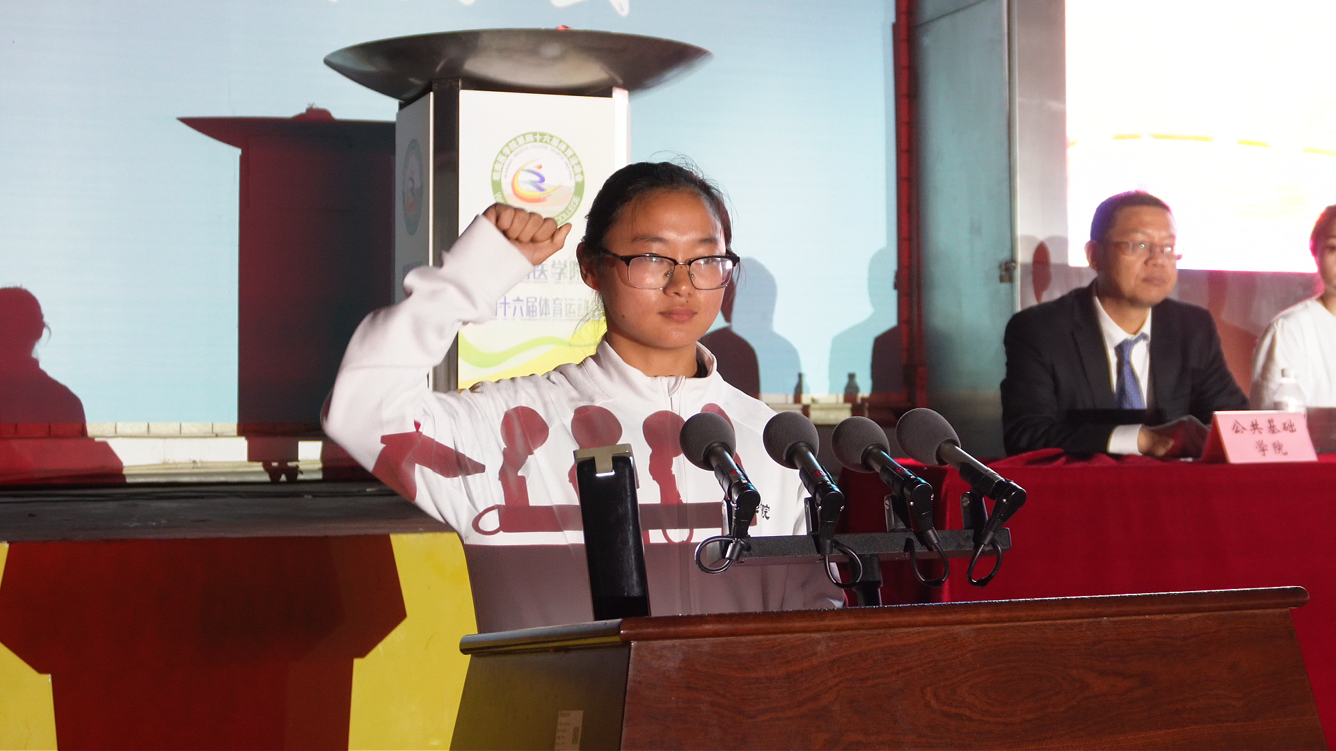 运动员代表籍文莉同学、裁判员代表王子豪老师先后宣誓。