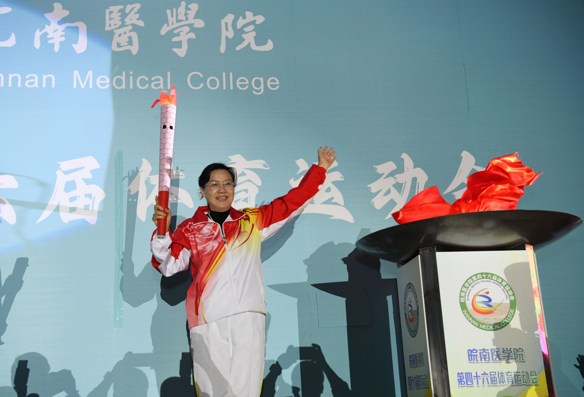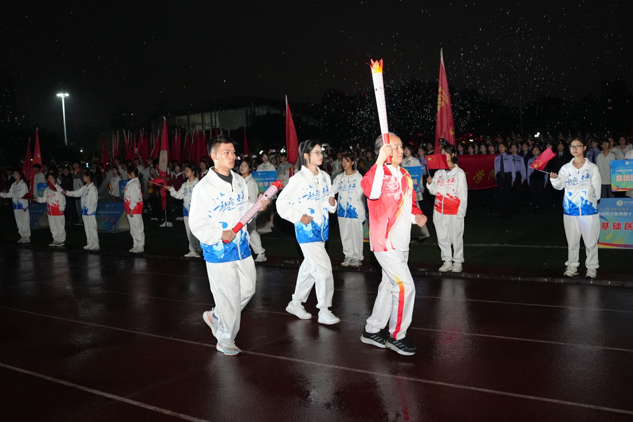“薪火”相传,生生不息。火炬传递及点火仪式成为开幕式亮点之一。现场大屏幕播放1958-2025火炬传递视频,展示着皖医六十余载的发展之路。随后,由校领导、离退休教职工、教师、学生等代表组成的十名护旗手接力护跑。他们高举火炬,汇聚起更快、更高、更强、更团结的信念。党委书记夏劲松接力最后一棒火炬,并点燃主席台上的主火炬。熊熊燃烧不止有火炬,更有全体师生的激情与梦想。立足新起点、逐梦新征程,全体皖医人将以锐意进取、力争上游的奋进之姿,砥砺前行再创新辉煌。