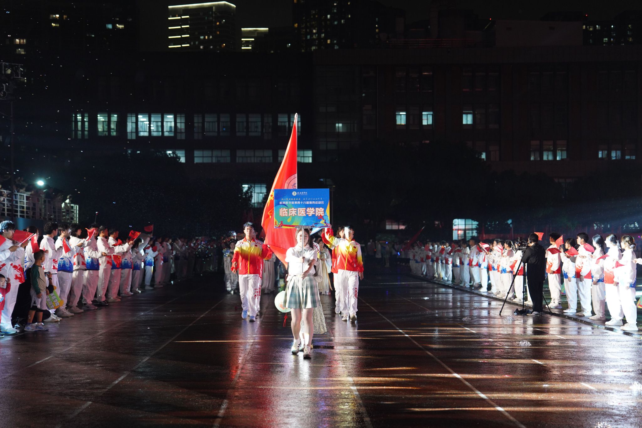 青春似火逐秋日,奋勇拼搏正当时。10月16日晚上7时整,学校第四十六届体育运动会在运动场隆重开幕。校领导夏劲松、贾贤燕、王保中、韩永升、余结根出席开幕式,北京天坛医院安徽医院、附属太和医院、附属皖南康复医院、附属北京安定医院芜湖医院等医院负责人,运动会组委会成员,裁判员,运动员,学生代表参加开幕式。开幕式由党委常委、副院长余结根主持。