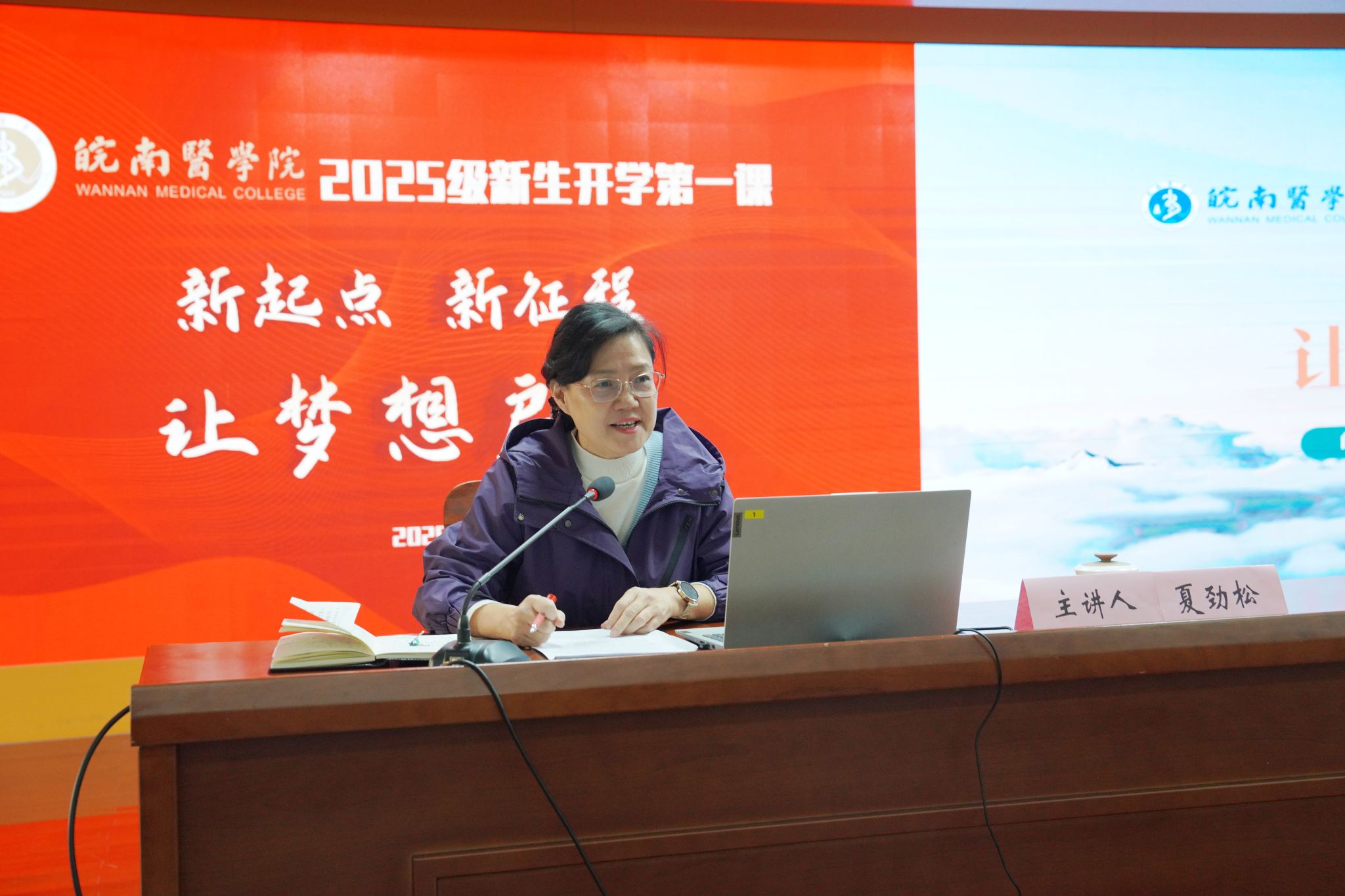 课程最后,夏劲松寄语全体新生要秉承校训,发扬皖医精神,博极医源、精勤不倦,在青春的赛道上奋力奔跑,成就更好的自己,谱写无愧于时代、无愧于人民的青春华章。