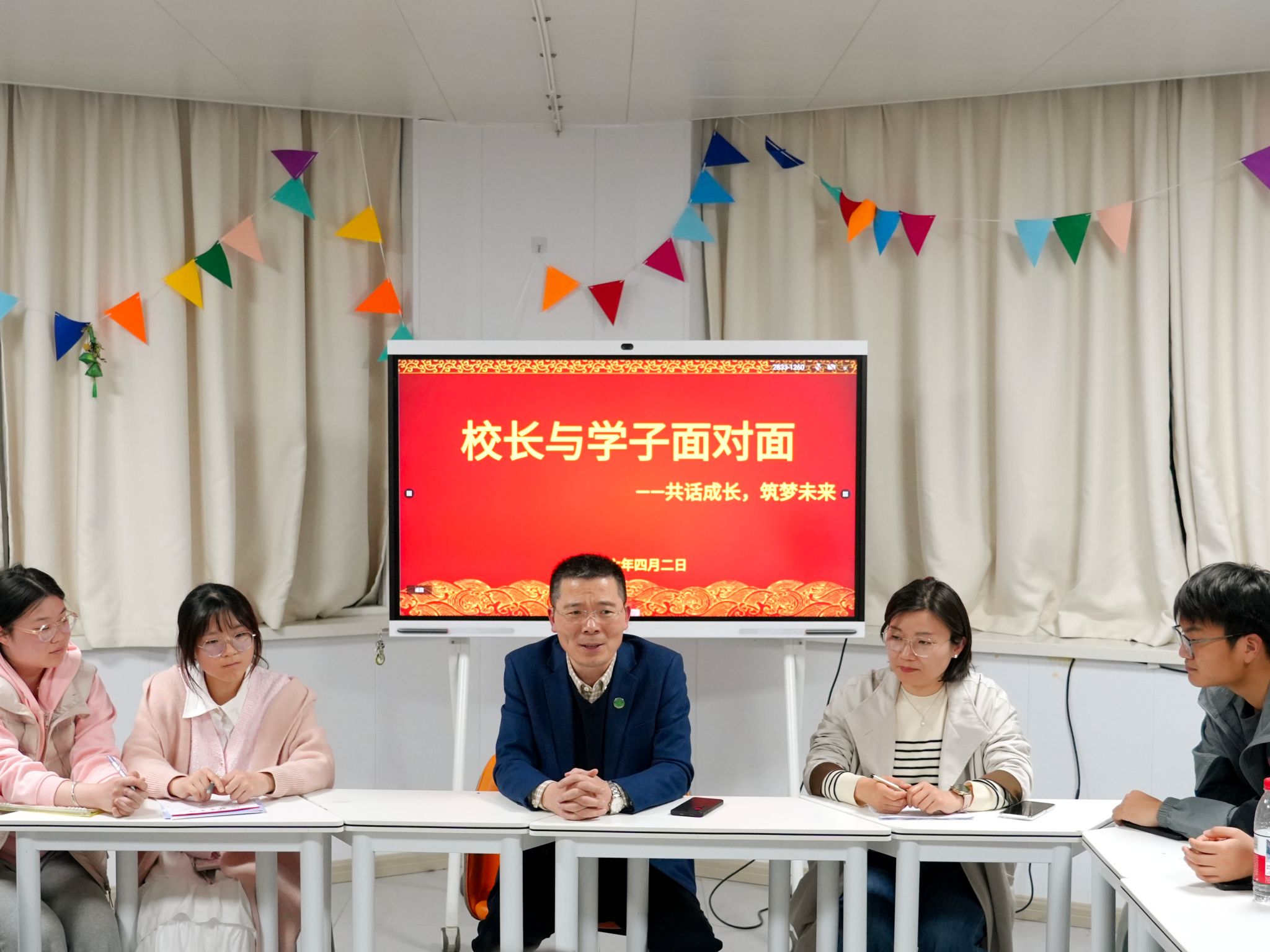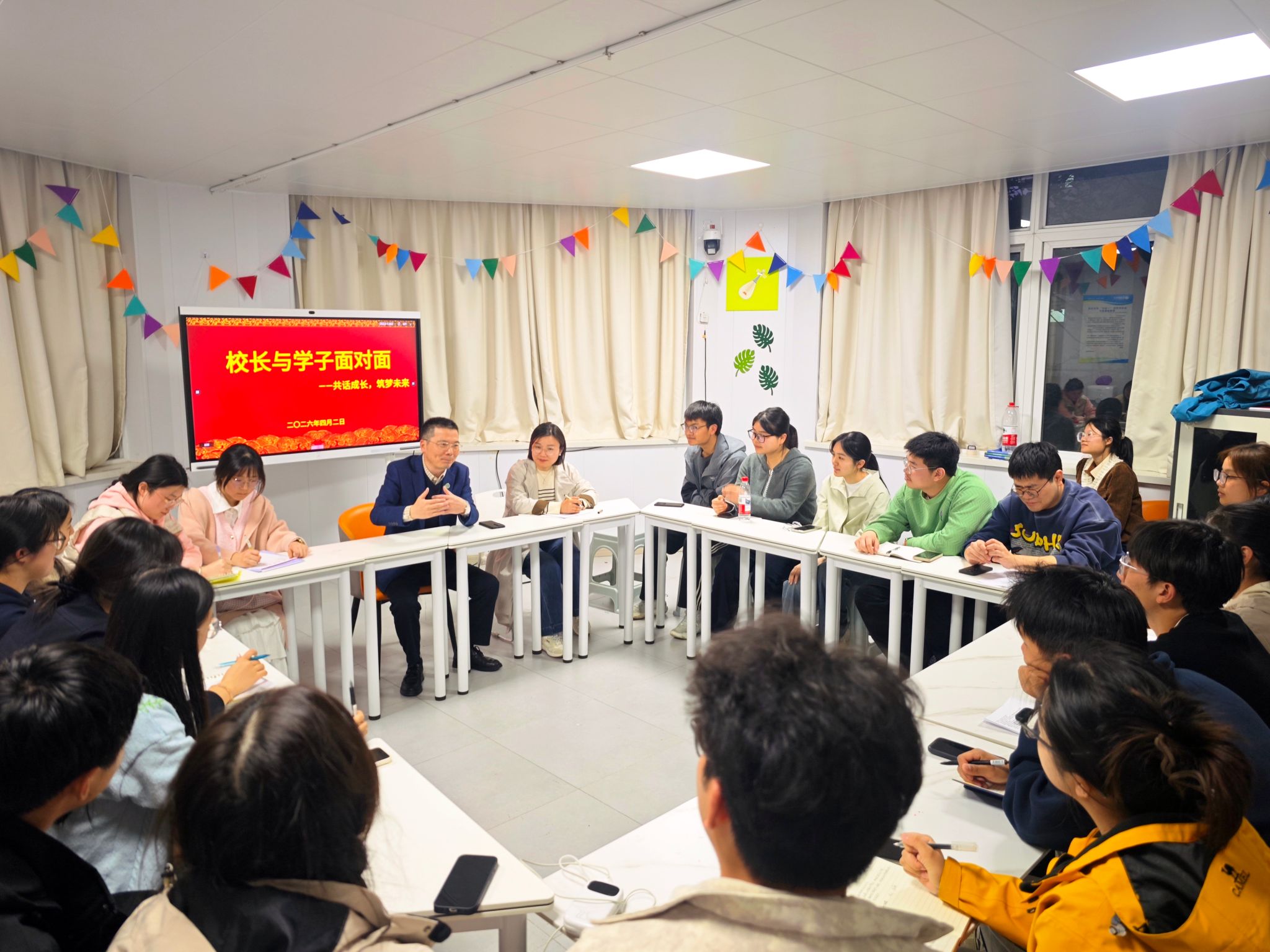 4月2日晚,学校党委副书记、校长姚应水走进滨江校区(北区)“一站式”学生社区,与公共卫生学院师生代表围坐一堂,开展了一场以“共话成长 筑梦未来”为主题的面对面座谈。此次活动旨在近距离聆听学子心声,回应成长关切,共绘发展蓝图。