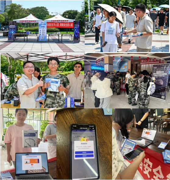 校园活动筑牢师生安全防线。9月16日是网络安全宣传周校园日,学校在滨江校区北区一食堂广场、南区食堂广场面向全体师生开展了线下网络安全知识宣传活动。活动现场,工作人员向过往师生发放网络安全知识宣传手册、防电信诈骗宣传单等,并现场讲解网络安全知识,引导师生参与“守护青春 网络有你”网络安全知识闯关答题。活动现场气氛热烈,多名师生以满分通过竞答并获得安全文创奖品。参与者纷纷表示通过此次活动深刻认识到了网络安全的重要性,切实提升了自身防护意识。