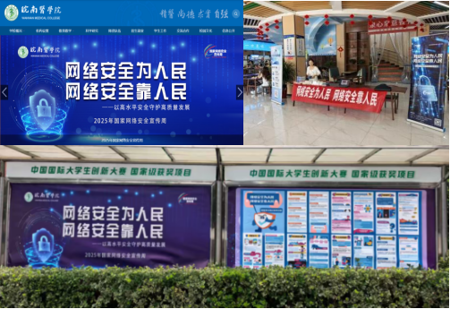 多维宣传构建沉浸教育氛围。本次国家网络安全周期间,学校在校园网主页、校内宣传栏、食堂门口等多个位置展呈网络安全宣传周主题海报、网络安全法律法规和防范注意事项等内容,各部门、单位也通过线上线下相结合的宣传方式给全校师生推送网络安全知识和活动信息,多渠道营造了浓厚的网络安全宣传氛围。